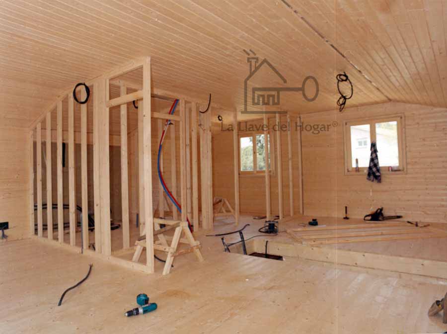 Estos cambios de las instalaciones NO es posible en los sistemas Nórdicos ó Finlandés pues las instalaciones pasan por agujeros creados en la fábrica perforando los troncos (que se debilitan) y no se pueden modificar posteriormente las instalaciones, que tendrían que ser vistas.